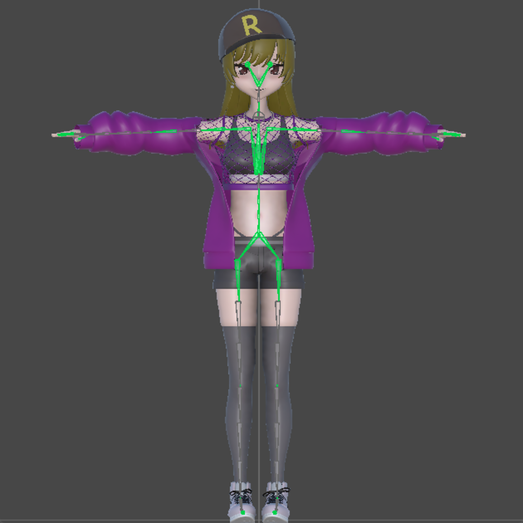 モデルデータをアップロードください。Blenderでリギングしてお送りします。リギングには下記の内容を含みます。